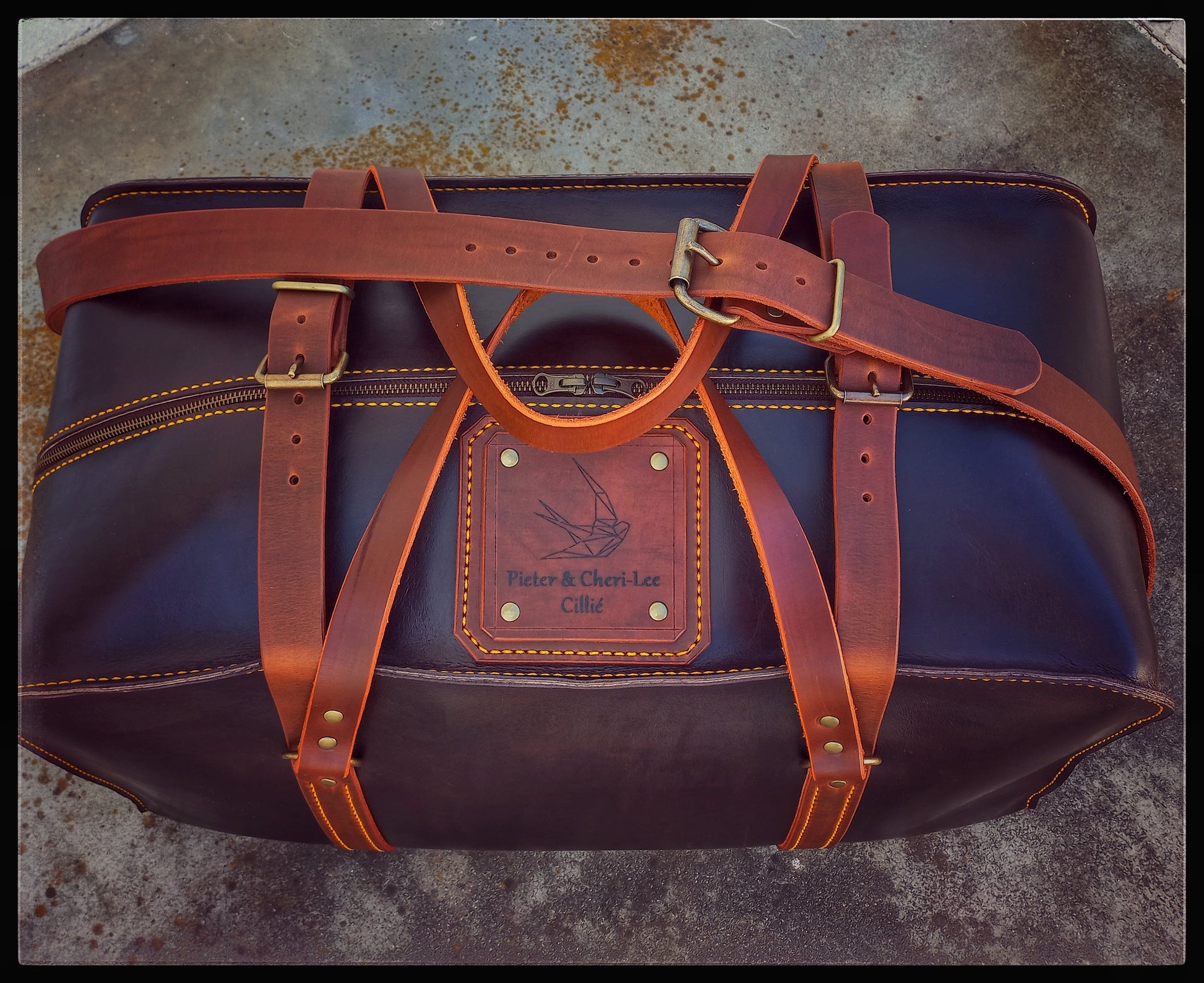 400x280x300mm. Soft outer body with veg tan straps. Name can be engraved on a patch.