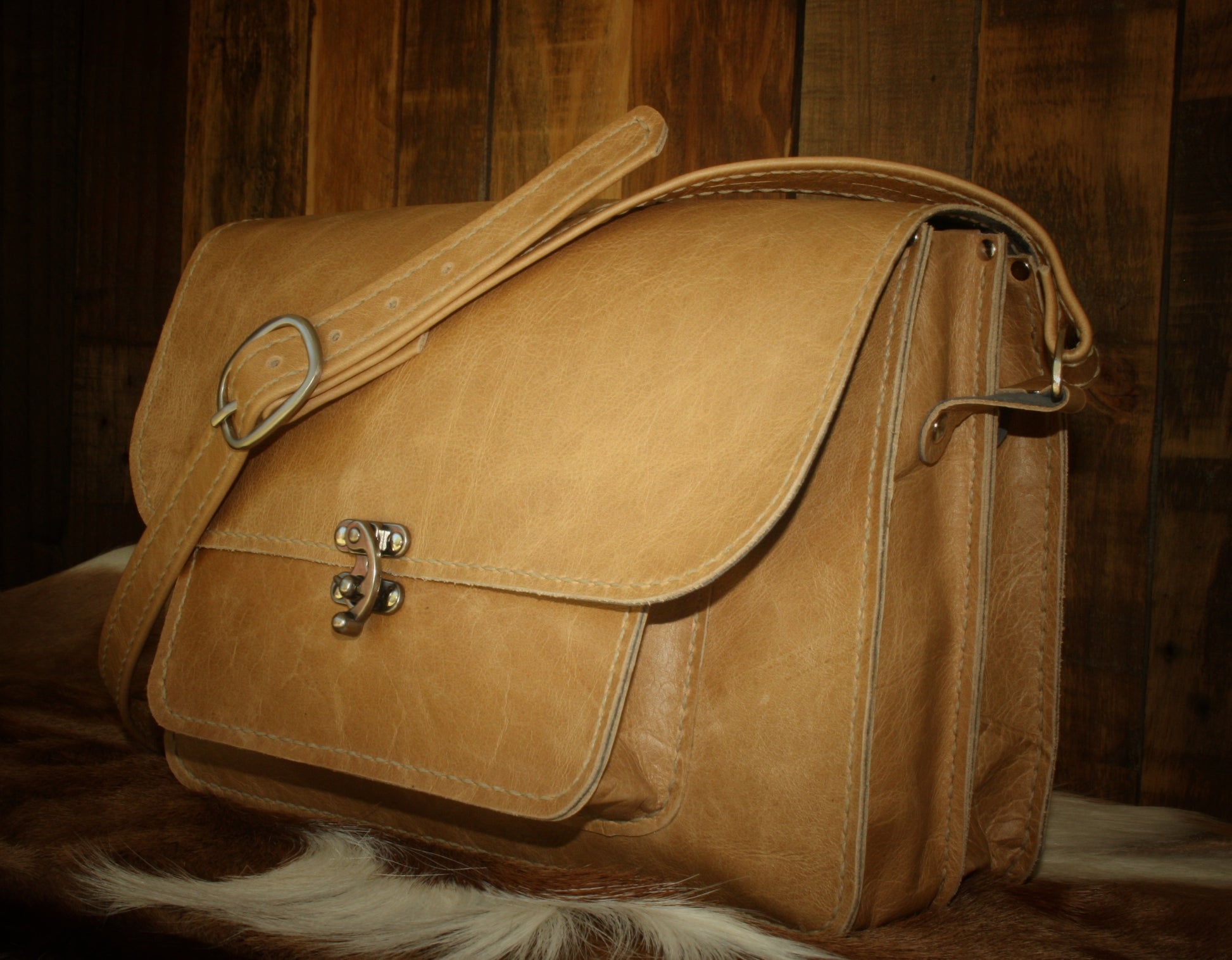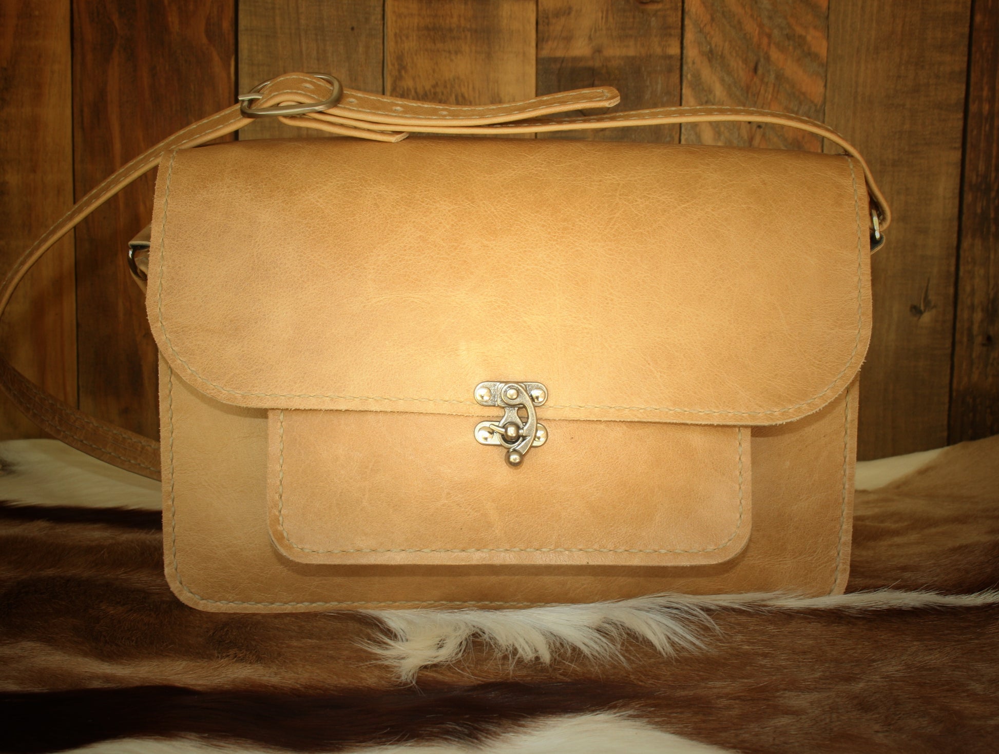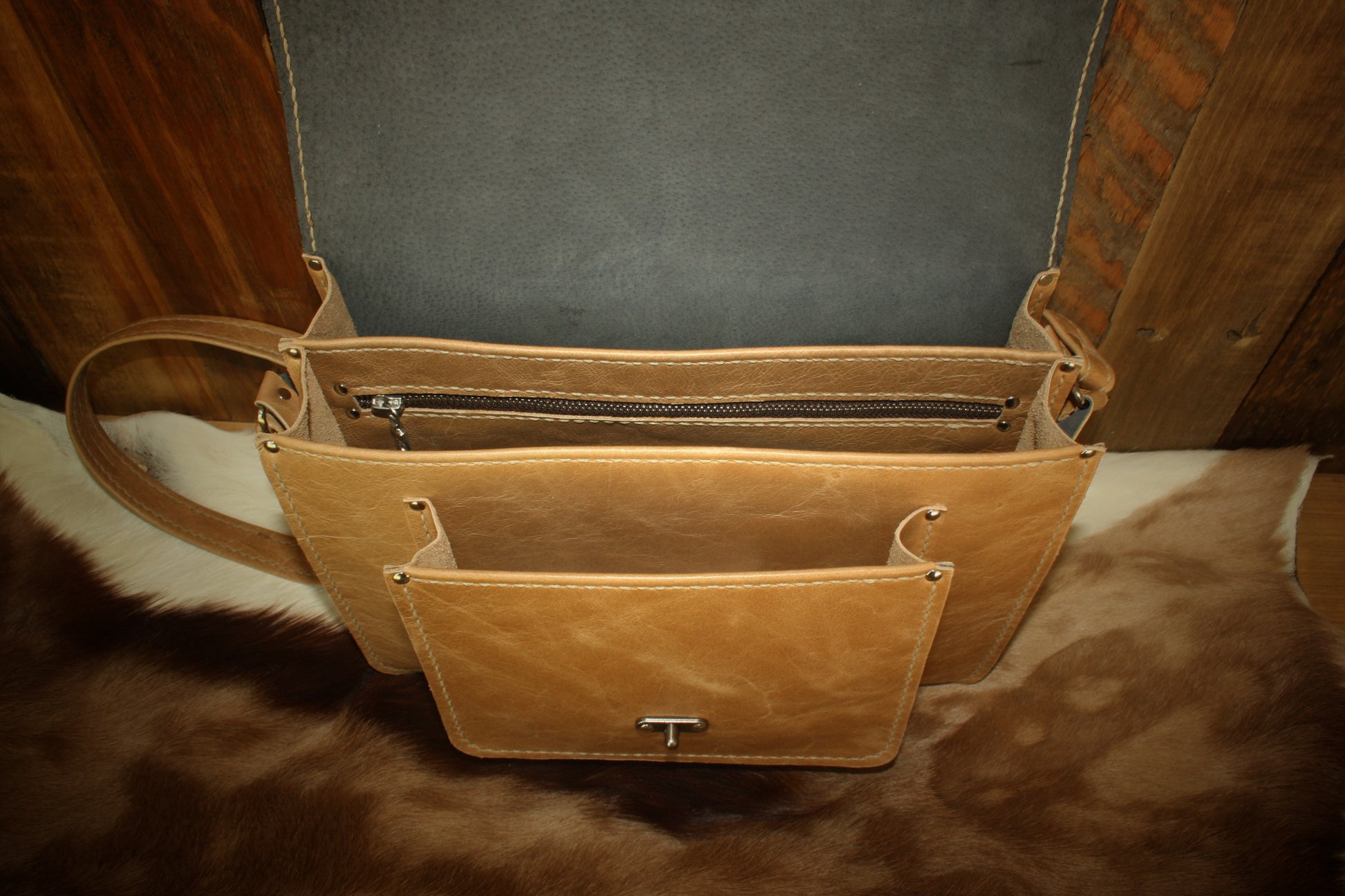 2 compartments, a small front pocket, a zip pocket. Adjustable sling. Can be made to order in different colours. Often purchased in a set with the woman's wallet. Please contact me to discuss colour combinations.
